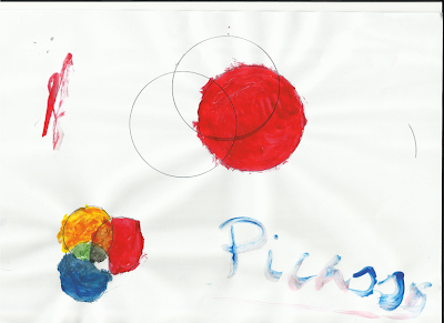 Entre todos tenían que realizar las mezlcas de colores para conseguir una gama de colores secundarios a partir de los primarios. La lámina debía ser pintada como en la siguiente imagen: